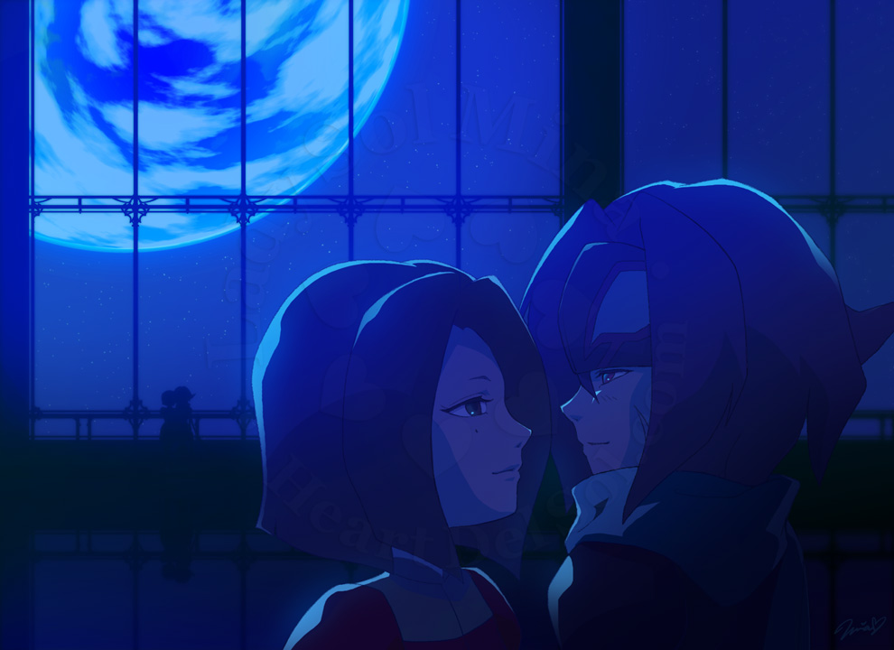 Valentine's day art with Sabata and Carmilla on the Moon. Their silhouettes are close together, but they are standing slightly apart. Since last year, I've drawn several scenes of the moon, and I've gotten better at drawing the Earth in the background🌎 「地球が綺麗ですね」 サバカミでバレンタイン絵。1カメと2カメからのアングルで、シルエットはくっついているけど実は手前と奥に立ってる、というような状況。去年から月の場面=背景に地球がある絵を描くことが多い気がする。 |