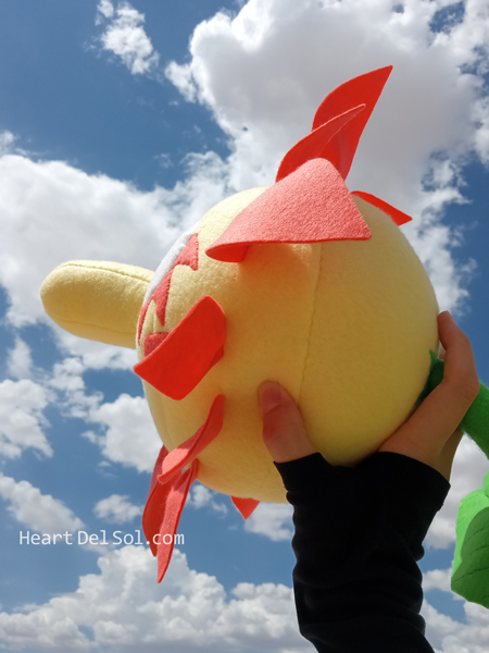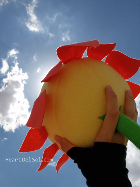 To celebrate Boktai 19th anniversary, finally I made Manga (Comic) Otenko plushie! There are wires inside the stem and leaves to bent and shape. So I tried to imitate a manga panel from Garm episode (below). ボクタイ19周年を記念して念願の漫画版オテンコぬいぐるみを制作しました。型紙はGBA・DSおてんこさまの完成後には用意していたのですが、材料(赤オレンジのフェルト汗)が揃わず長らく保留されていました。あまりの嬉しさに早速ガルム戦の「会いたかったぜ、おてんこぉぉ!!」の前のギュッのコマも再現させていただきましたw |