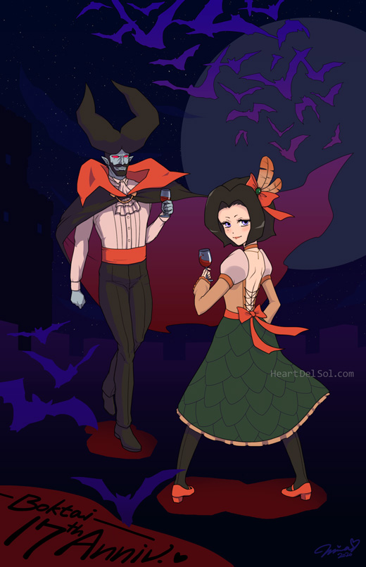 Celebrating with Count and Carmilla! いつも太陽サイドのキャラを描くので、たまにはイモータルでお祝い絵。 |