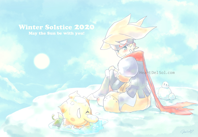 A watercolor-ish winter scene. Otenko is too warm to play with snow❄ It was a rare winter solstice with the great-conjunction of Jupiter and Saturn. 水彩風味で冬景色。雪の上に半ズボンはちょっと可哀想だったかも・・・。絵とは関係ありませんが土星と木星の重なる珍しい冬至だったそうです。 |