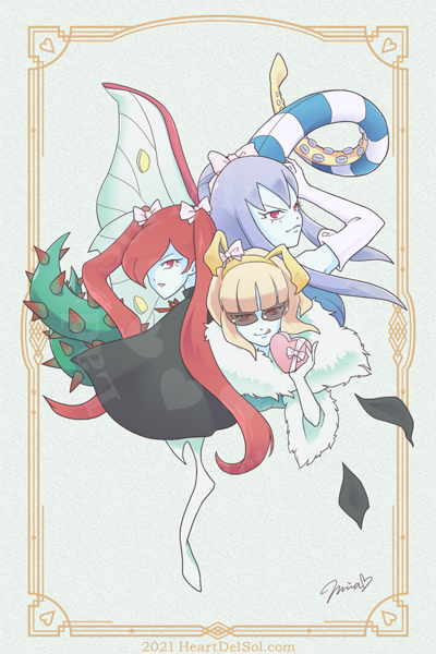 There were no girls so I drew those three. I was in a bit of hurry to draw the three characters at the same time. I think I like the blue sister the best. 女子が少ないので華やかな三姉妹をまとめて描こう…として時間が尽きた絵。三人の中では青姉が一番好きかな🐙 |