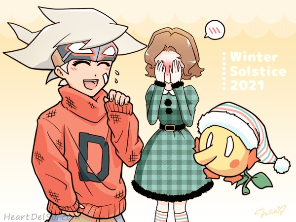 | 155 | 冬至のあいさつ、手編みセーター。For Winter Solstice 2021. Django is having a warm and cozy season. |