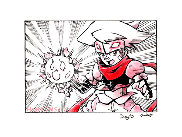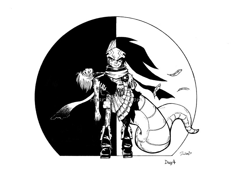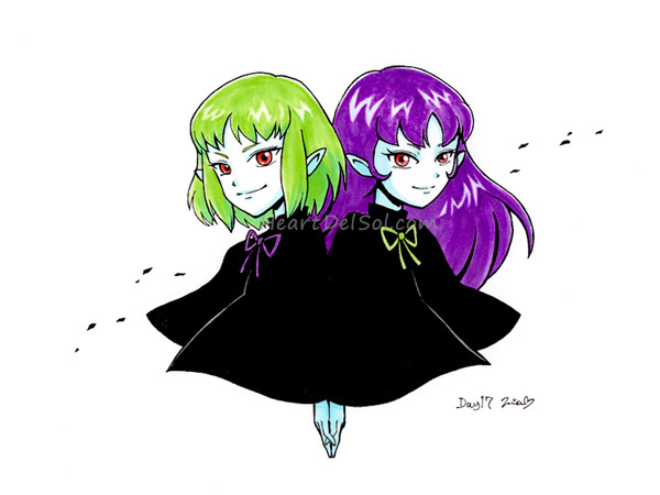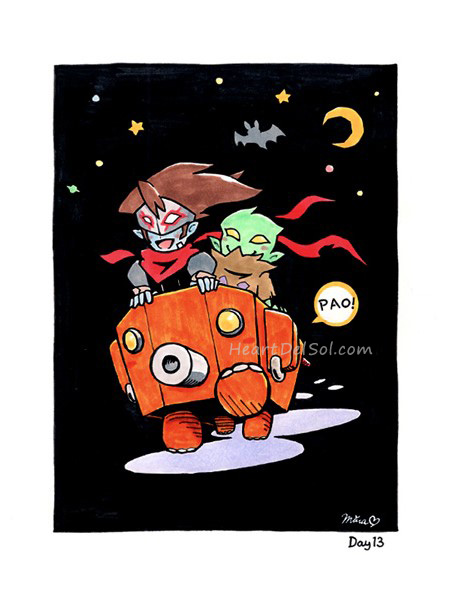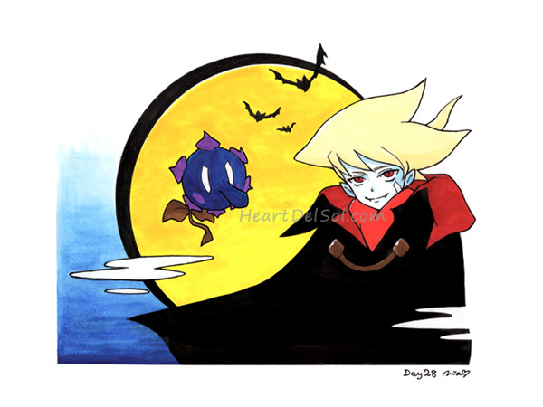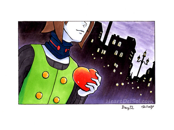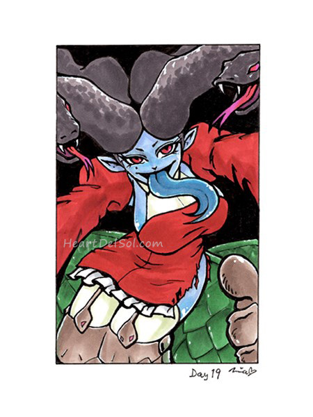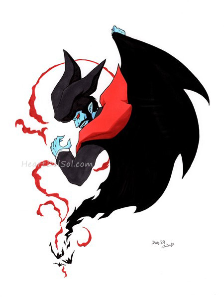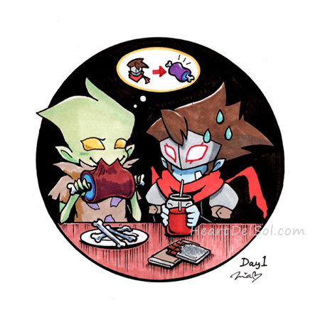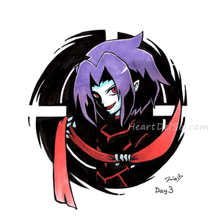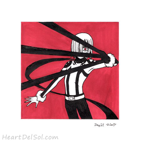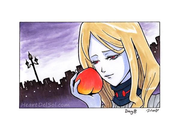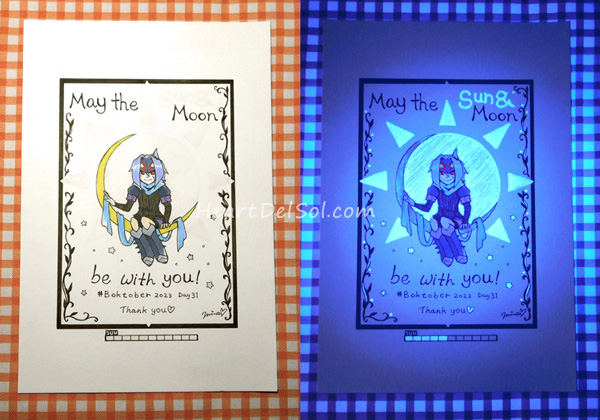 今回のために古いマーカーを何本か新調しようとオンラインストアを覗いてみたところ、集めていたブランドの製品が個別に買えなくなってしまった(涙)ようなので、別ブランドのマーカーを試してみることに。紙は9x12インチのマーカー用紙を半分に切って使いました。今年は太陽・暗黒テーマのお題が日替わりに来るので、暗黒テーマの日はベタ背景にも挑戦してみました。 |