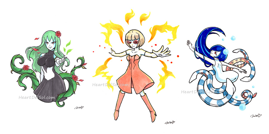 Earth sis, flame sis, frost sis, and give cloud to the bro. 緑姉・朱姉・青妹になりました。白兄もいいかも。 |
