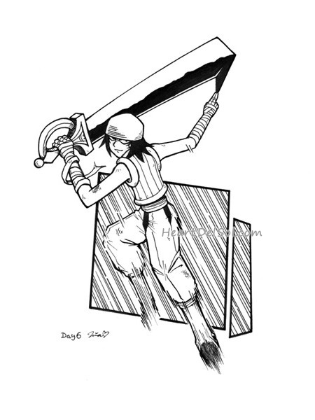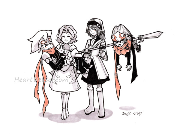 Sabanargand? According to the guidebook's concept art description, those skulls represent anger and sadness of the victims of fight between light and darkness. This became my most favorite piece I drew this month. サヴァナルガンド。サバタどうかしてる…じゃなくて、攻略本のイラスト集にあるヴァナルガンドの設定が切なくて好き。光と闇の戦いの行き着く果てがここだとすると深いし、慈愛と狂気で背負っちゃうサバタも哀しい。今回描いた中でたぶん一番気に入っている絵。よい子に配慮してぼかしちゃったけど、戒めの剣はぐっさり刺さってるように描きたかった。 |