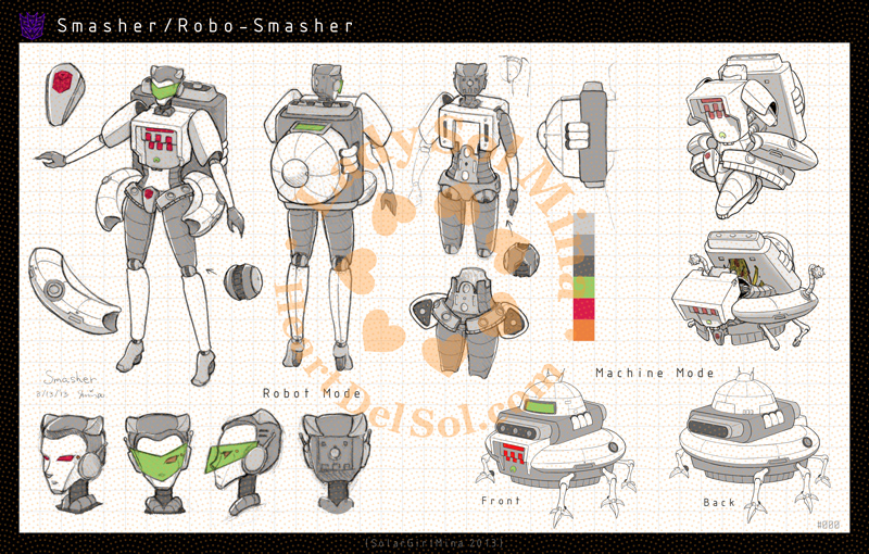 I'm not sure people will believe this or not, but I'll share my true story. I didn't very interested to make my original characters for any TF series before. However, the day after 2011's AnimeExpo, when was the first time I wear my Megatron cosplay, G1 Megatron appeared in my dream and told this secret about Robo-Smasher. I remember this very well because it was the Fourth of July day and I went to the theater that afternoon to watch the TF's third live-action movie. Unfortunately, I didn't have much art skill to draw any robot character at that time, but I kept practicing my drawing and finally she is here. I was just happy to see Megatron in my dream, and my drawing got better. How nice! 🥰 |