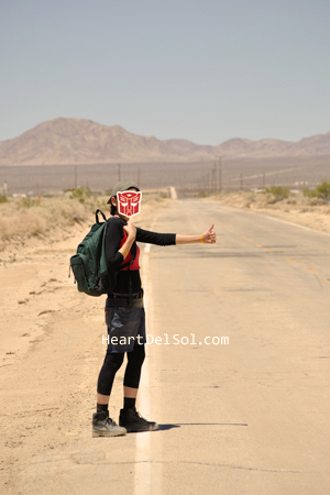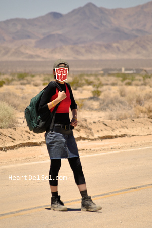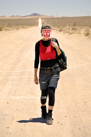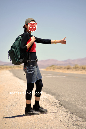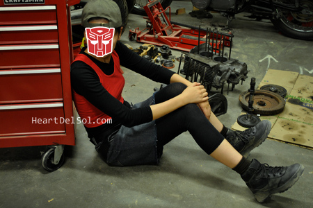 I liked the location very much, even I'm not sure where exactly it was. It should be somewhere between Phoenix and Riverside. This place seemed like Hunter's VW bus will coming and the whole story begins! The picture below is Verity in Jimmy's (poor) garage. ロケ地が最高でした。人間がTFに出会っちゃうのはこんな場所なんだろうと思いながら撮影。下の写真はおまけ、ジミーのガレージ。腕輪(MFリスペクト?)つけ忘れた汗。 |